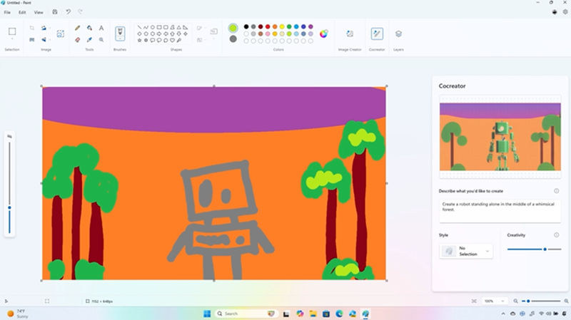 コクリエーターは、Windows に標準搭載されている「ペイント」と連携することで、キャンバス上に描画した内容に合わせてAIが自動でイラストを描き起こす機能です。