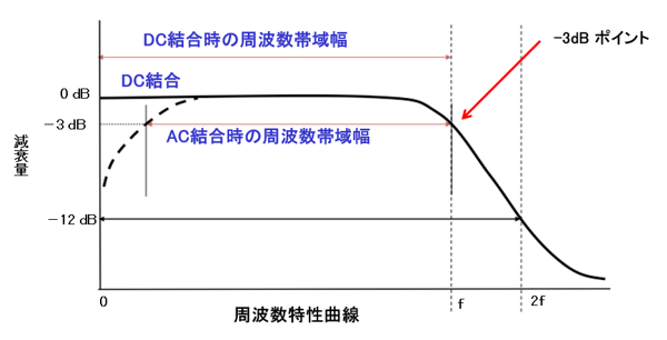 「周波数帯域は、振幅がマイナス3dBのところです。」のところもオシロスコープだけの話ではありません。