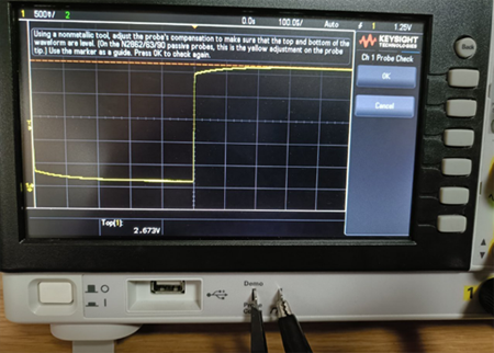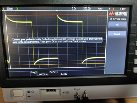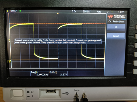 オシロスコープを使用する際、最初に、付属する「パッシブプローブの補正」を行ってから測定することを最初に教わります。