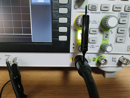 パッシブプローブ (10:1プローブ) は、プローブ先端の電圧を10分の1にしてオシロスコープ側へ送り込む役割をします。