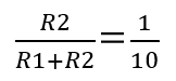 直流電圧は抵抗を通り、(コンデンサは直流の場合、流れる電流はゼロ) オームの法則通り、R1の9MΩとR2の1MΩの直列回路で分圧されて10分の1になりますので、抵抗値は以下の条件を満たしていれば良いことになります。