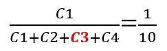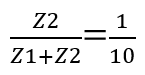 実際のR、1/jωCでの計算式は省略しますが、C1・R1= (C1+C2+C3+C4)・R2の条件を満たすことで、交流のインピーダンスで出てくるω=2πfの部分が消え、測定対象の周波数成分の大小に影響されることなく、Z2/Z1=1/9が維持できることが導出できます。