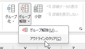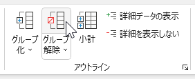 その状態で「アウトライン」グループの「グループ解除」ボタンを押します。