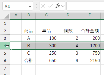 選択されているのが複数行、あるいは複数列であれば、追加の操作では同じ行数の「行」、あるいは同じ列数の「列」が追加されます。