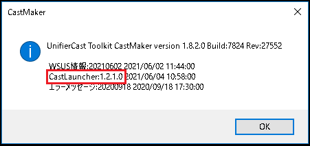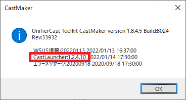 ダウンロード後、[ヘルプ]よりCastLaucherのバージョンが「1.2.4.10」になっていることをご確認願います。