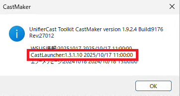 Unifier Cast v6 の 2025年10月 Bリリース以降のパッケージに、新しい CastLauncher が含まれます。そのため、CastLauncher の手動更新は不要です。
