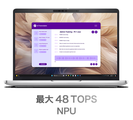 40 TOPS以上のNPUによりAI処理をローカルで実行。クラウド通信に依存せず、生成や検索を高速かつスムーズに行えます。